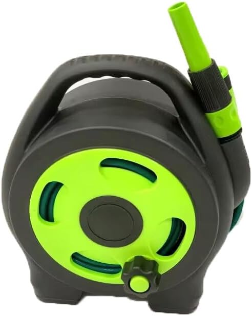 Carrello Avvolgitubo Manuale con Tubo in PVC da 11,5 mt + Allaccio 1,5 mt Incluso Balcony Midy con Lancia Connettori e Adattatori Verde
