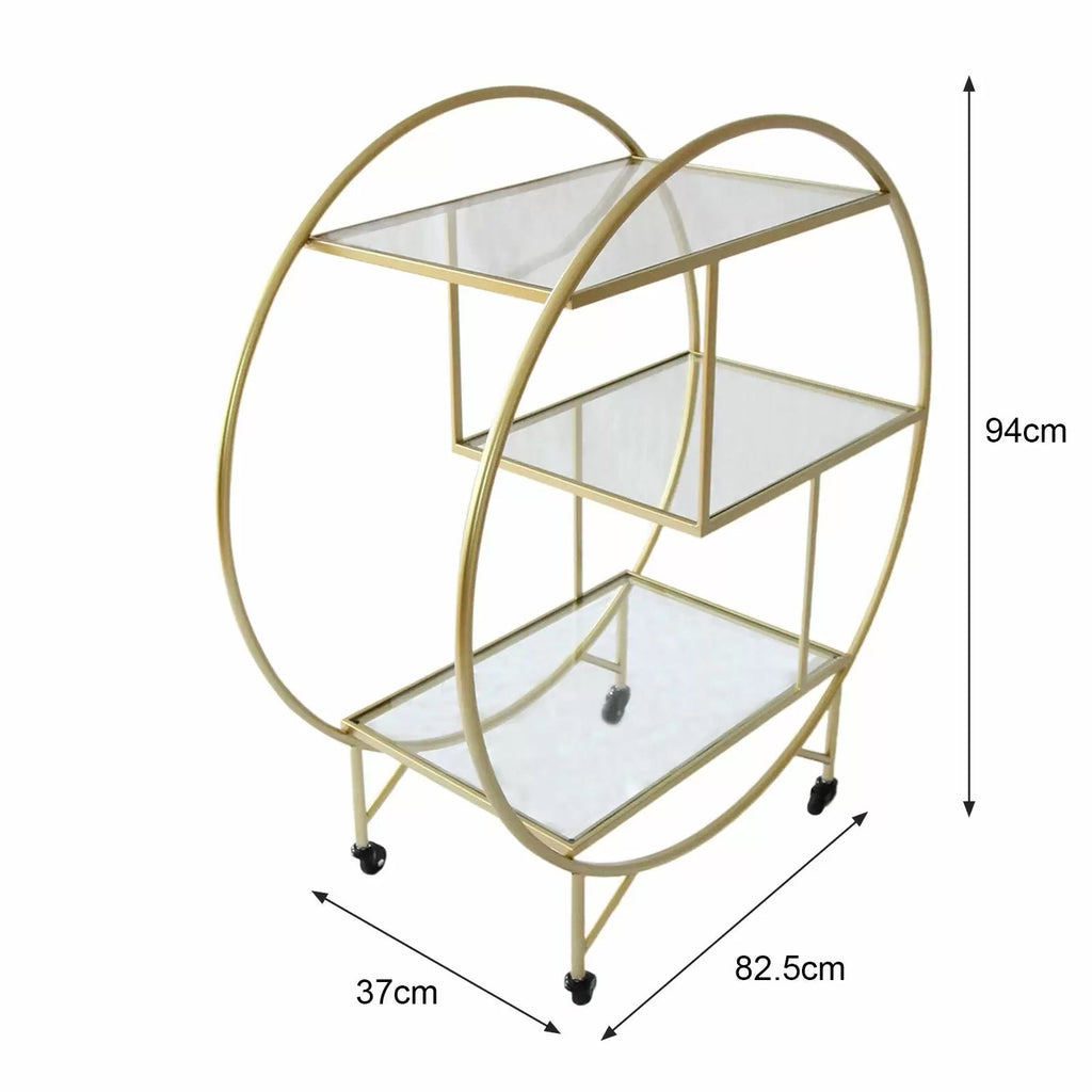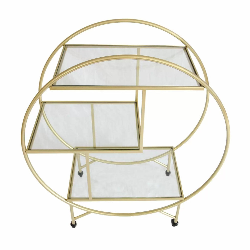 Desserte à cocktail 3 étagères 94x82x37 cm en verre et fer doré