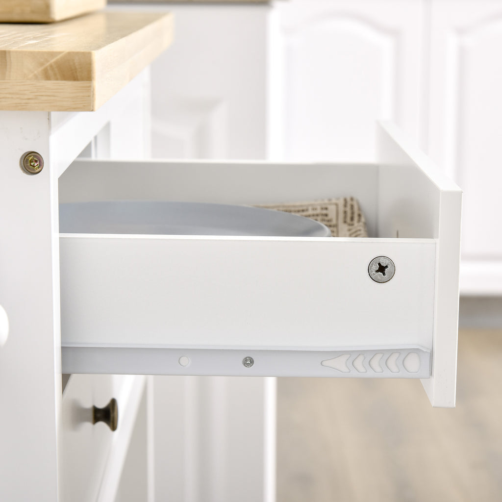 Vous souhaitez tirer le meilleur parti de vos espaces cuisine ? Ce chariot de restauration est un assistant indispensable ! Il dispose de 2 tiroirs, d'un meuble avec porte, d'une étagère inférieure et d'un porte torchon. Les 4 roues pivotantes rendent cet îlot de cuisine flexible, vous permettant ainsi de le déplacer facilement là où vous en avez besoin. Avec sa couleur bois et blanche, il présente un look élégant, qui s'adapte à tout type de décoration de cuisine.