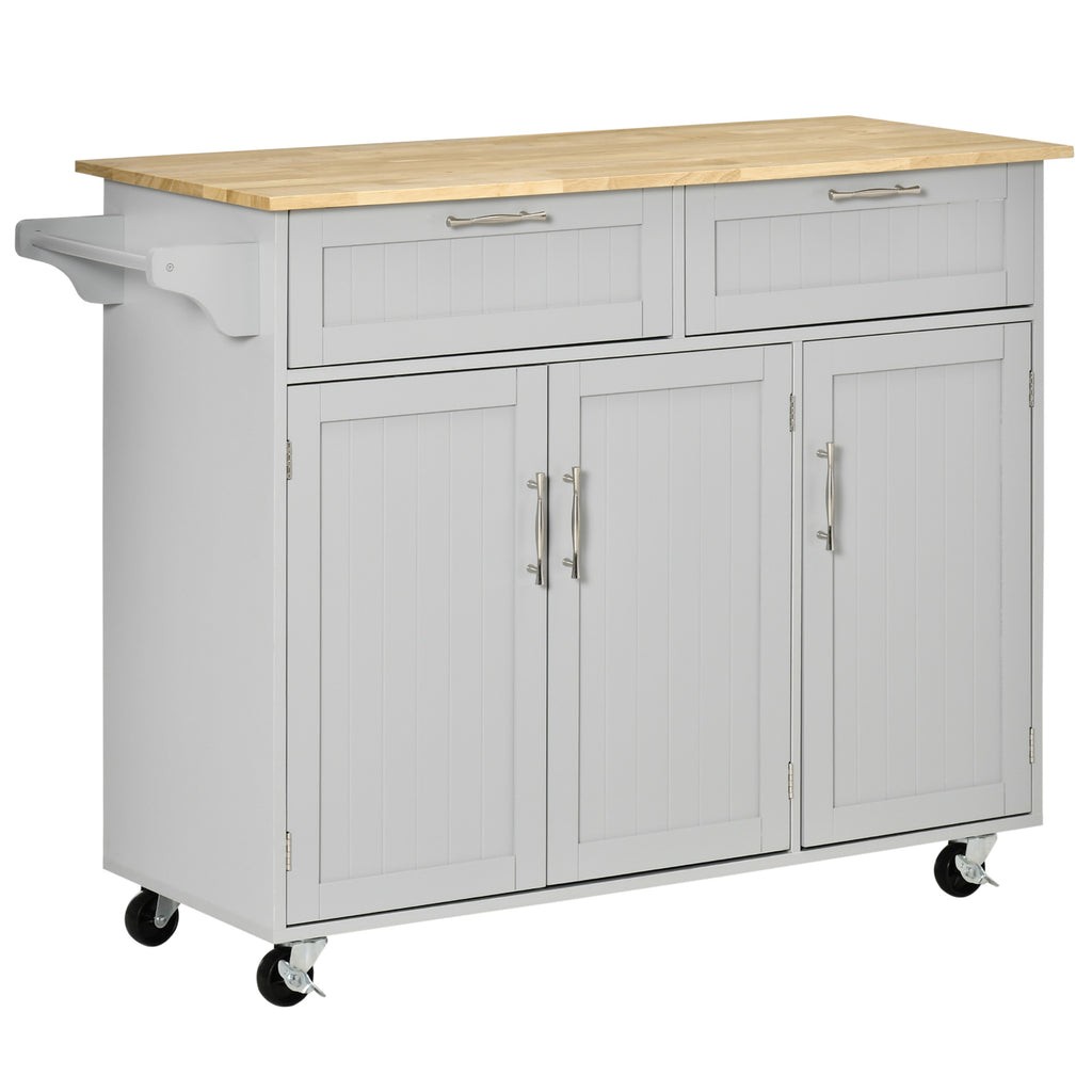 Carrello da Cucina 121x46x91 cm con Ruote in Legno Grigio