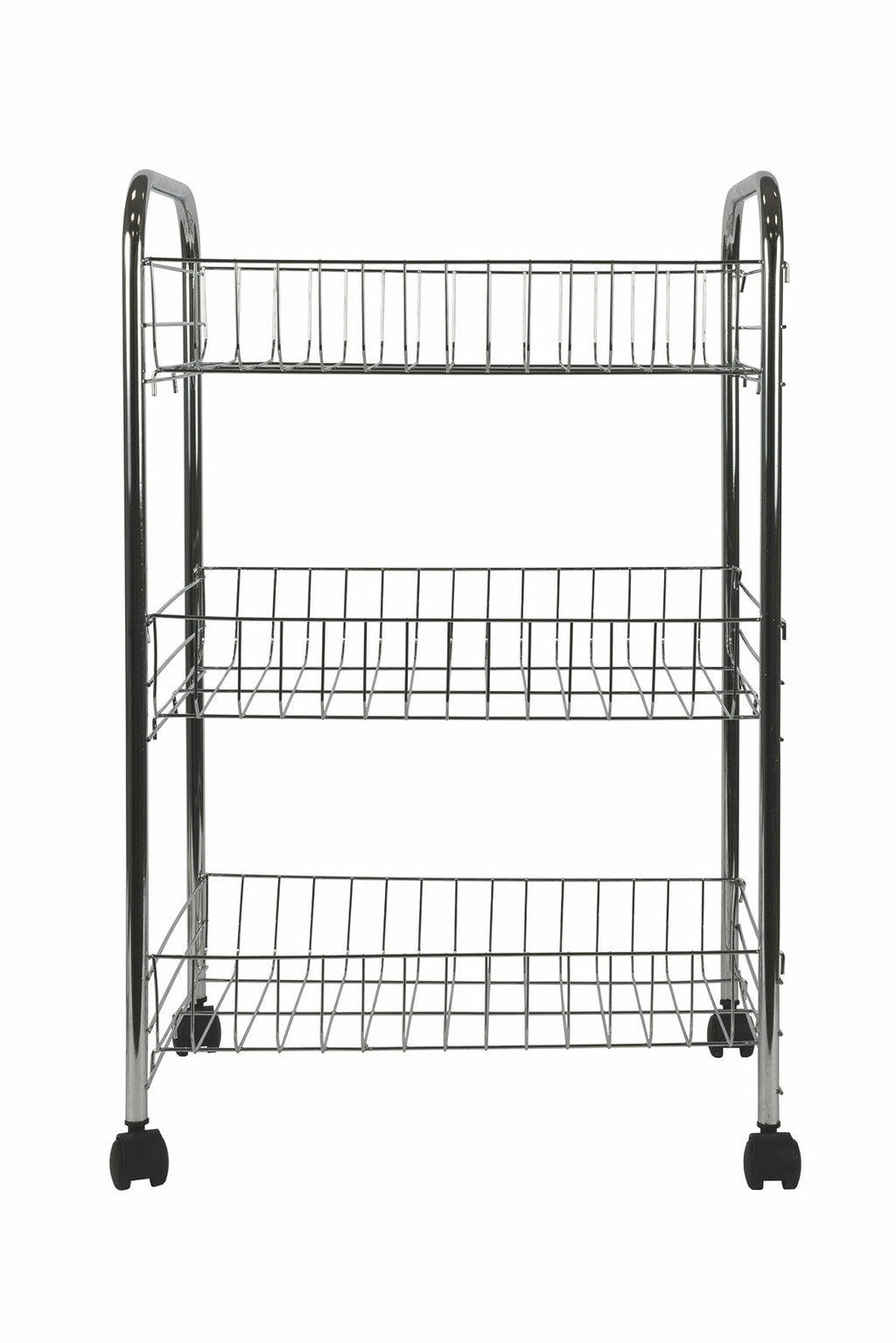 Desserte de cuisine 3 étagères 40x26x62 cm en métal chromé