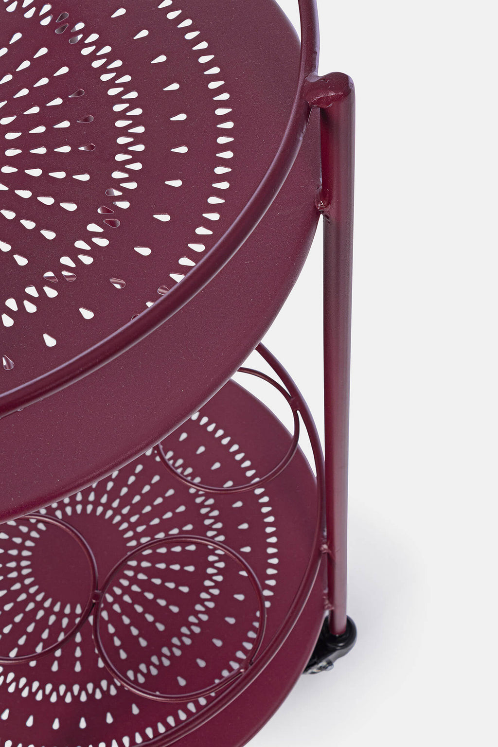 Desserte de cuisine 45x81 cm avec casier à bouteilles et roulettes en acier bordeaux