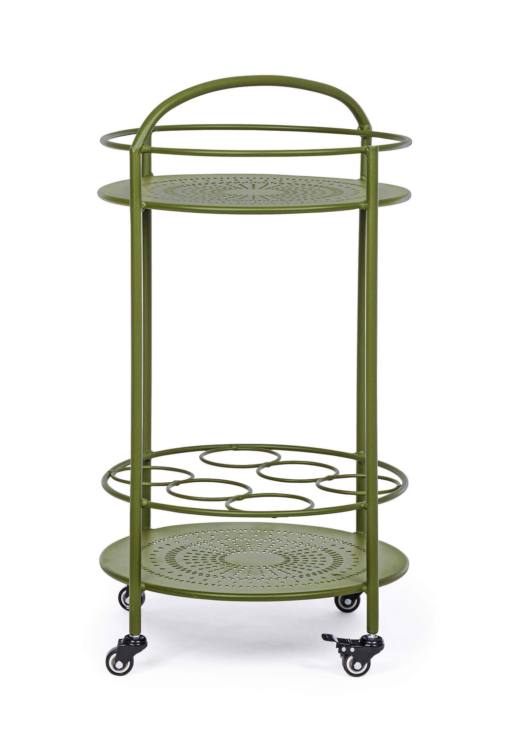 Chariot de cuisine 45x81 cm avec porte-bouteille et roues en acier vert