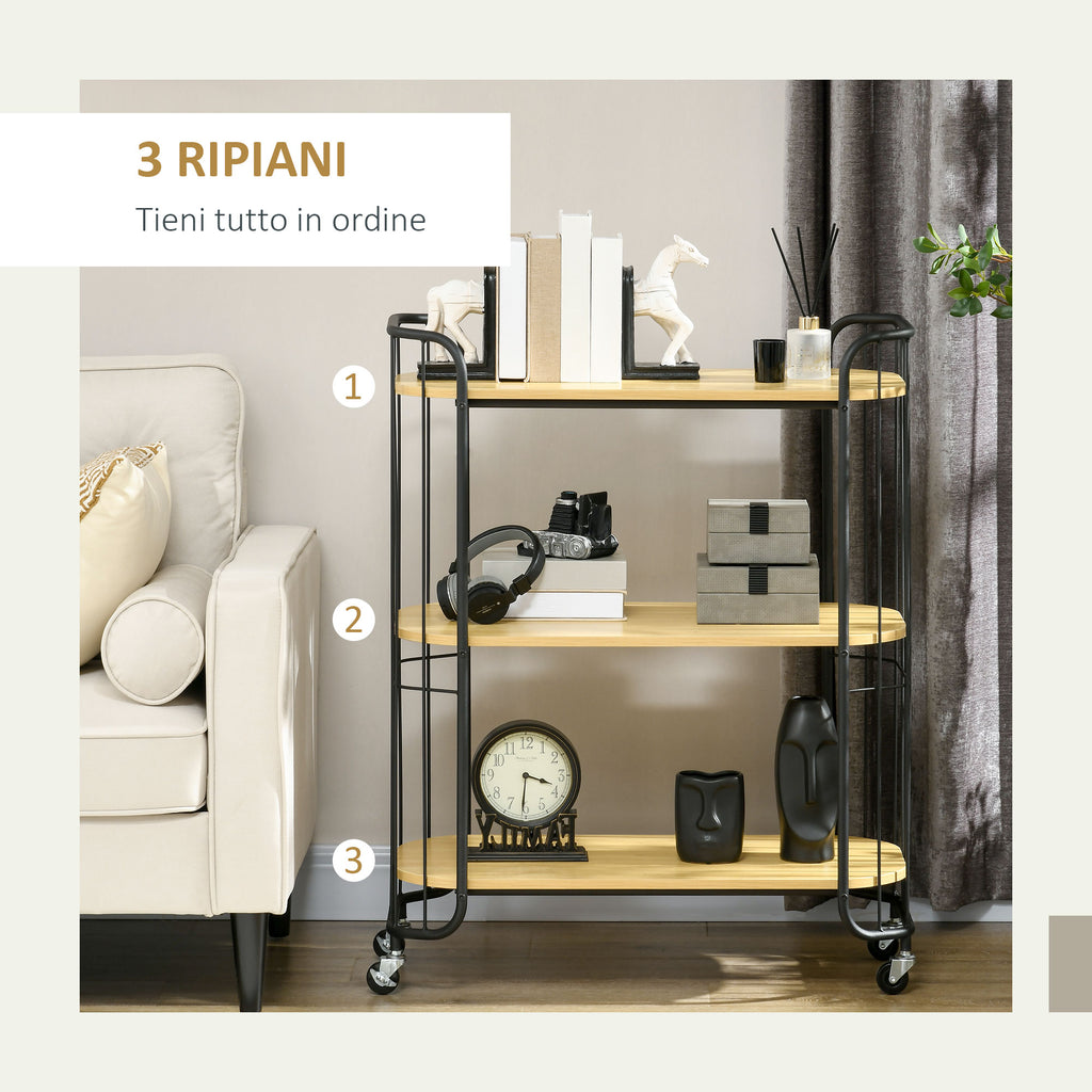 Carrello da Cucina 79x38x95 cm con Ruote in Truciolato e Acciaio
