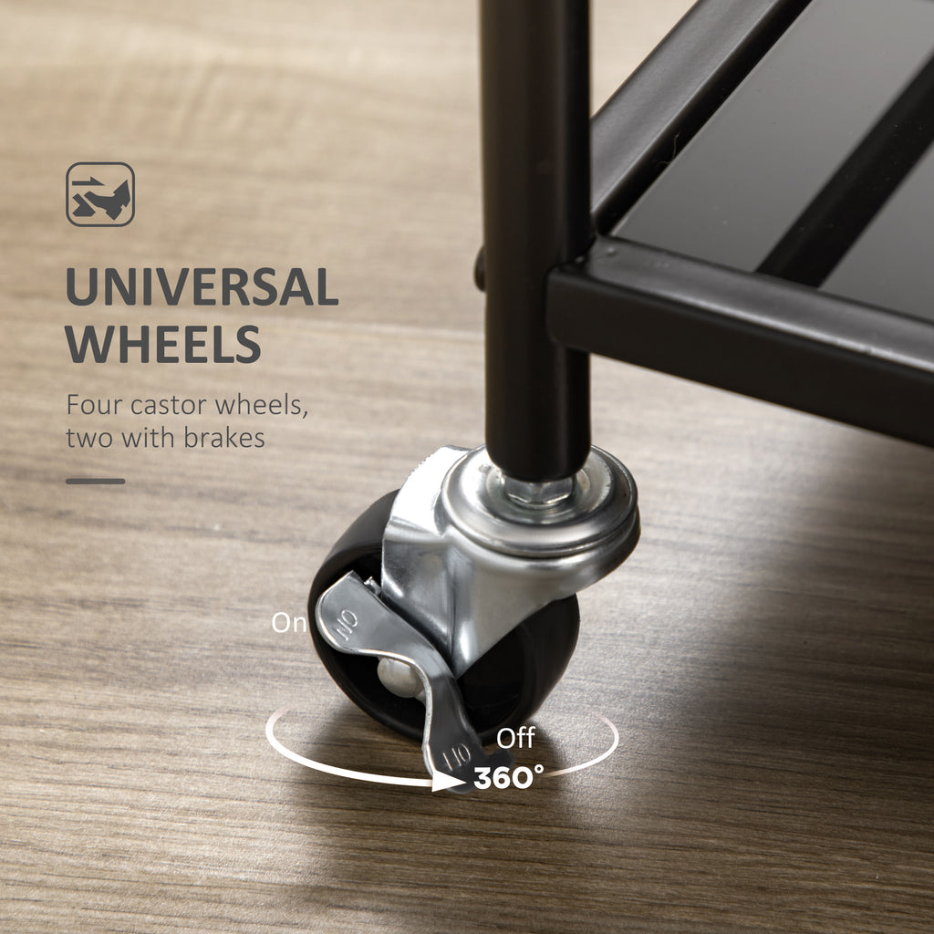 Desserte de Cuisine avec 2 Étagères en Verre Trempé 75x40x80 cm 4 Roulettes Structure Métal Noir