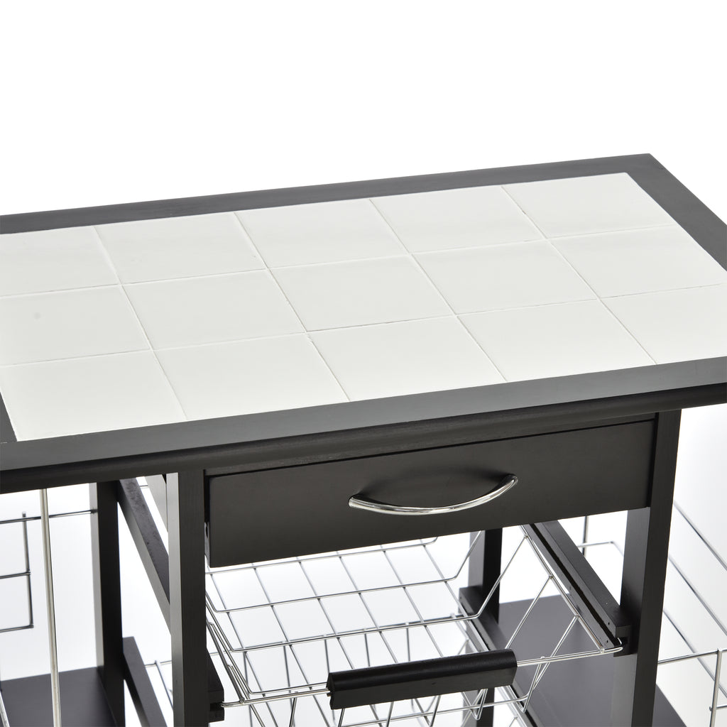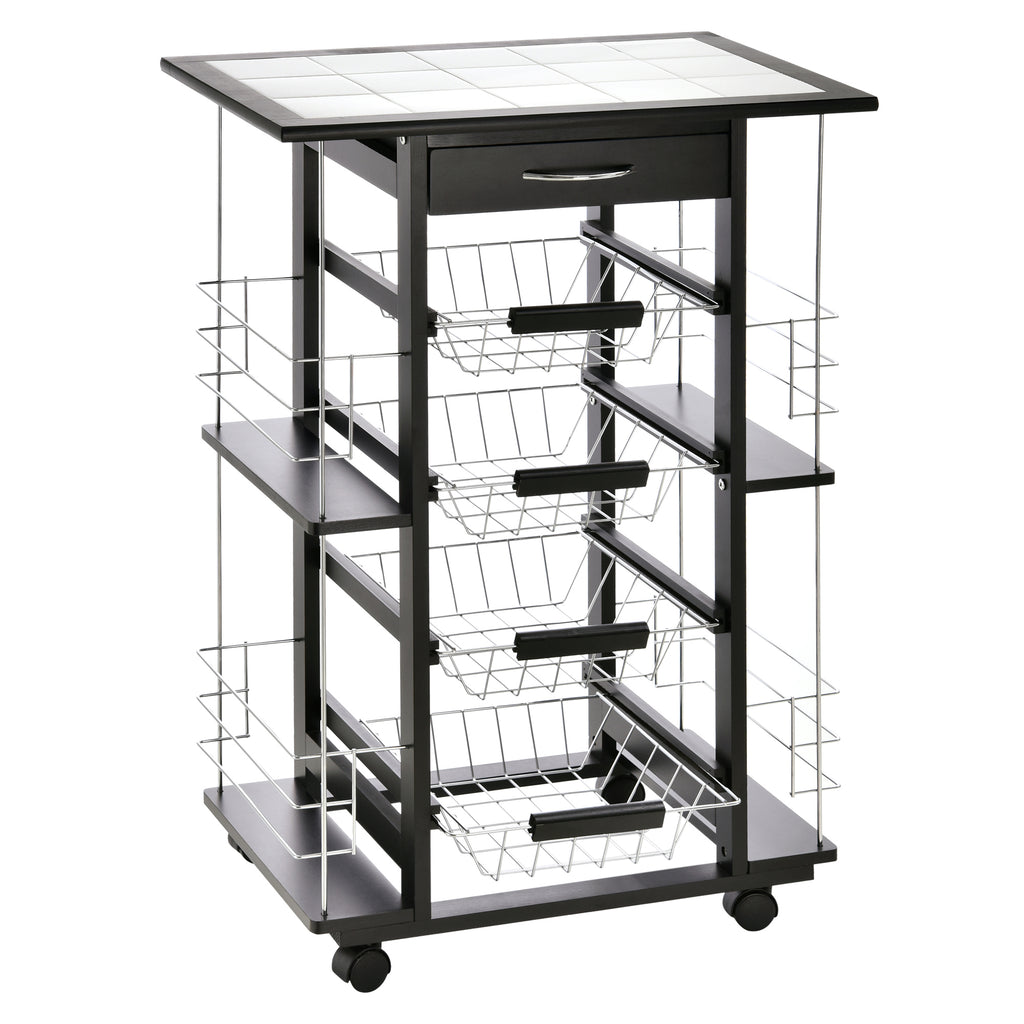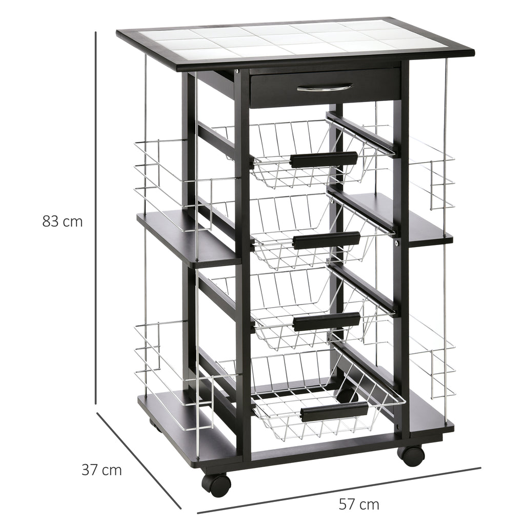 Desserte de Cuisine avec 4 Paniers et 4 Compartiments en Pin 57x37x83 cm Noir