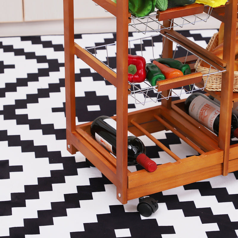 Chariot de cuisine pratique de haute qualité avec des éléments en métal et en bois de pin.