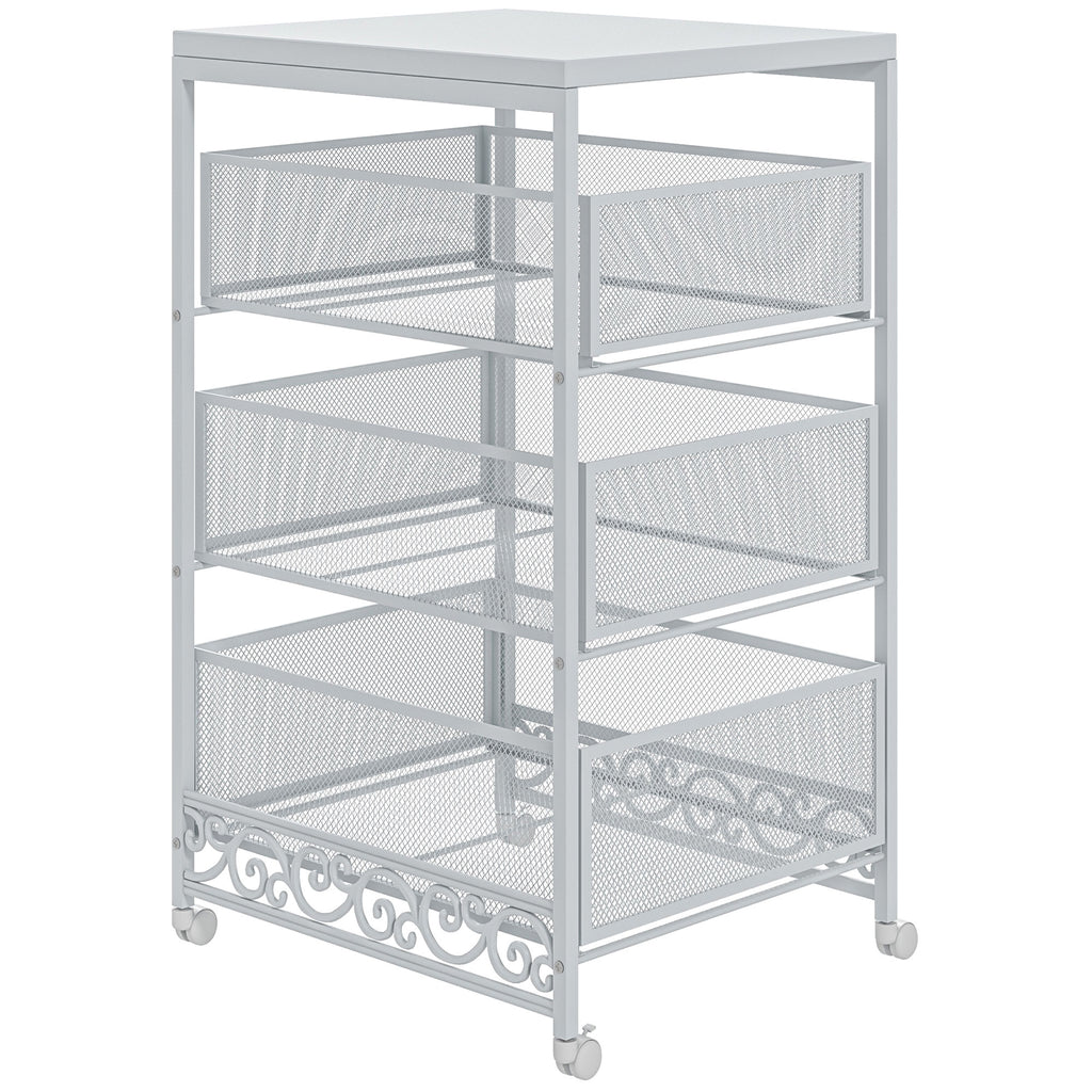 Ce chariot de rangement est compact et idéal pour les petites pièces nécessitant plus d'espace. La surface d'appui et les 3 plateaux présents offrent suffisamment d'espace pour ranger différents types d'accessoires, tandis que les 4 roulettes coulissantes avec deux freins vous permettent de le déplacer partout où cela est nécessaire. Vous pouvez utiliser notre chariot peu encombrant dans la salle de bain, la cuisine, le salon, à l'extérieur et dans de nombreux autres endroits où l'ordre doit être maintenu.
