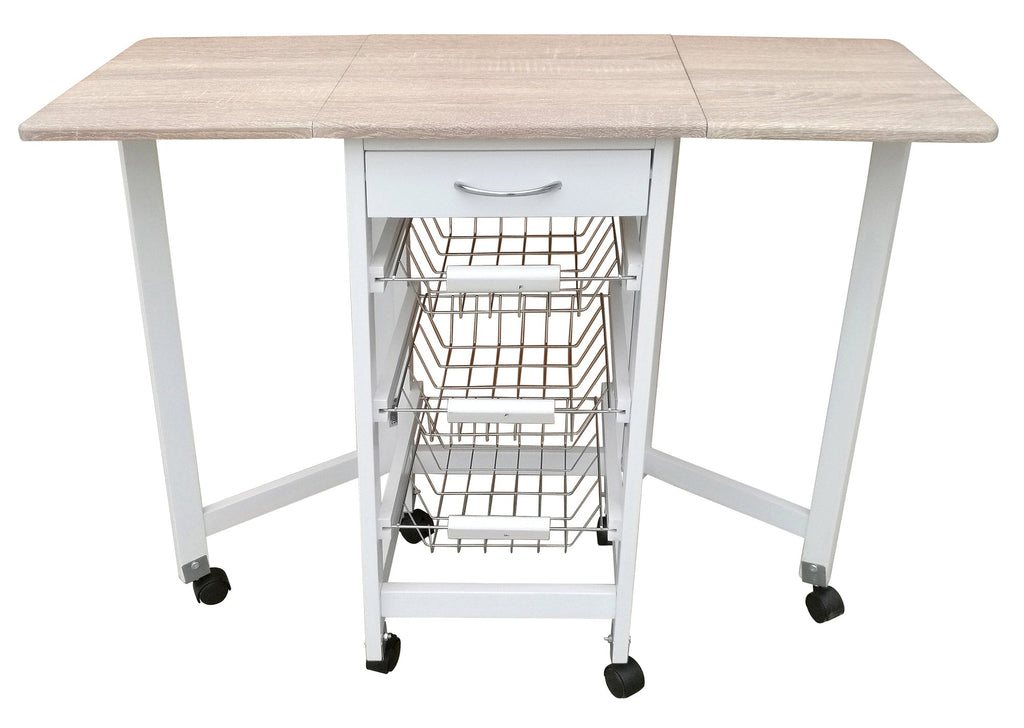Desserte de cuisine pliable gain de place 96x37x77 cm en MDF blanc et Sonoma