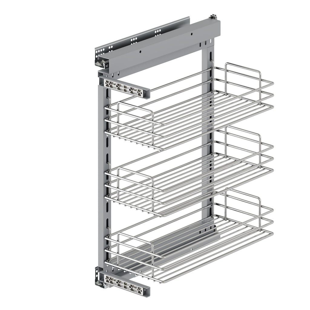 Chariot coulissant pour modules inférieurs de cuisine en acier finition chromée, idéal pour les petits espaces ou les unités auxiliaires.