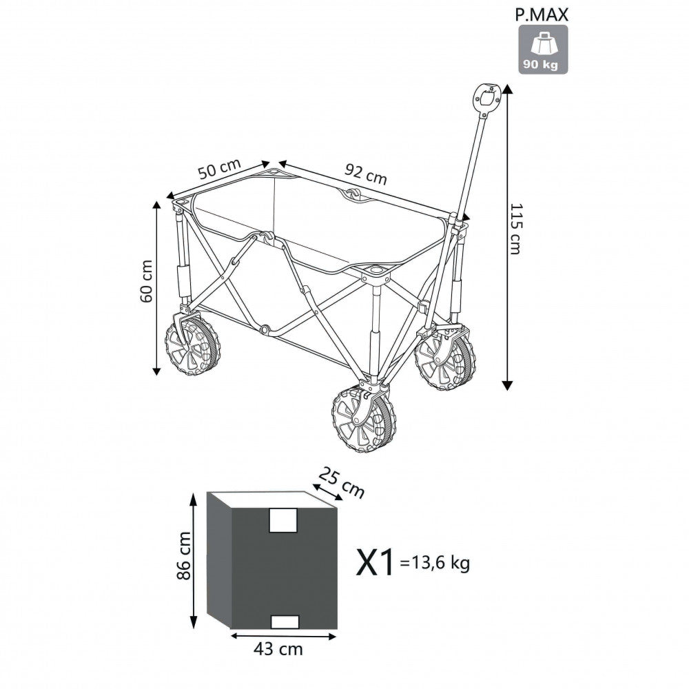 Chariot Pliant 92x50x59 h cm en Acier Bleu