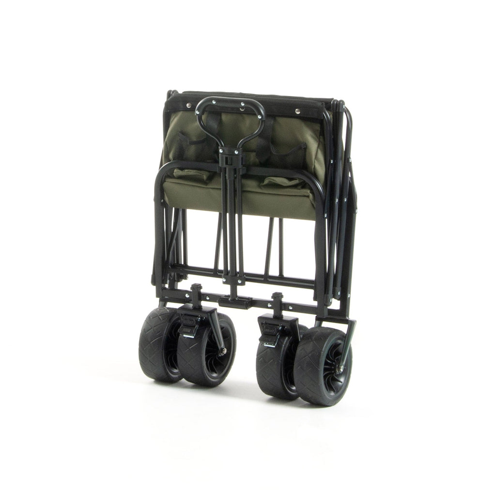 Imaginez un chariot pratique et résistant, avec poignée extensible, roues pivotantes et structure en acier thermolaqué noir. Recouvert d'un tissu vert résistant, il offre un espace intérieur généreux et une facilité de déplacement sur diverses surfaces grâce aux roues de 20,3 cm. D'une capacité maximale de 95 kg, il est l'allié idéal pour transporter confortablement vos objets.