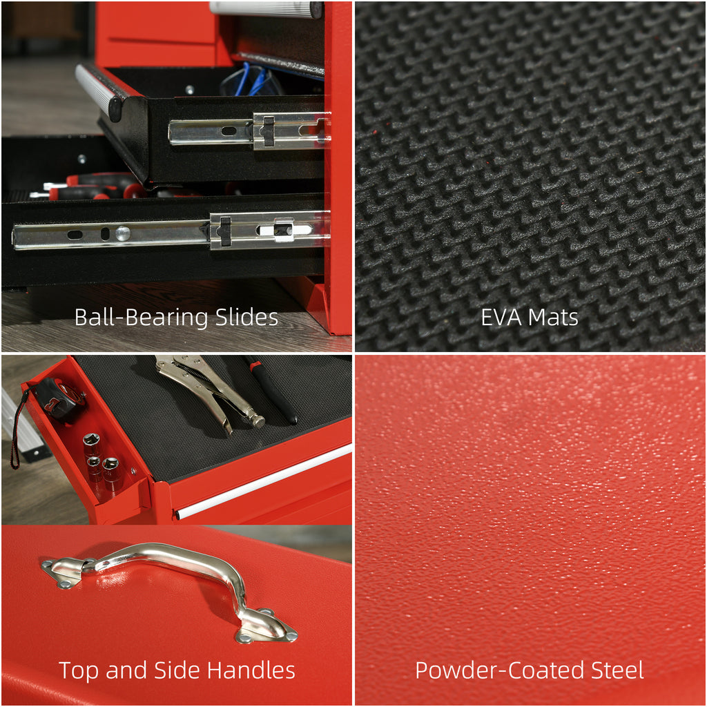 Carrello Porta Attrezzi 2 in 1 con Cassetta Rimovibile e Armadietto con Chiave in Acciaio Rosso