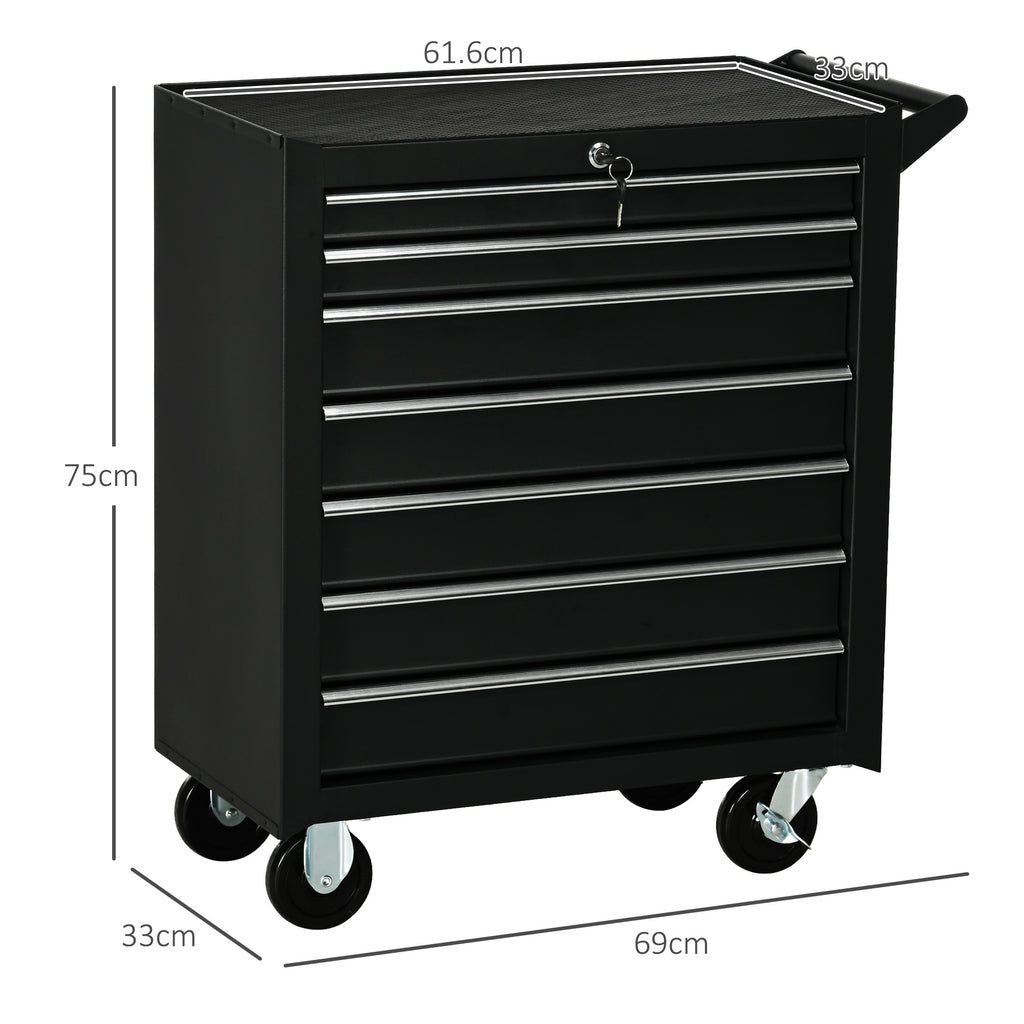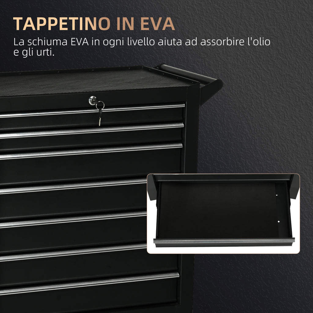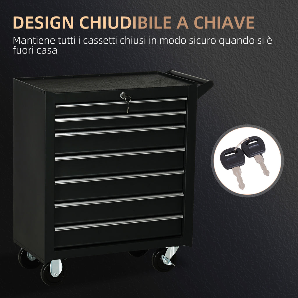 Carrello Porta Utensili da Officina con 7 Cassetti Serratura con Chiavi 69x33x75 cm Nero
