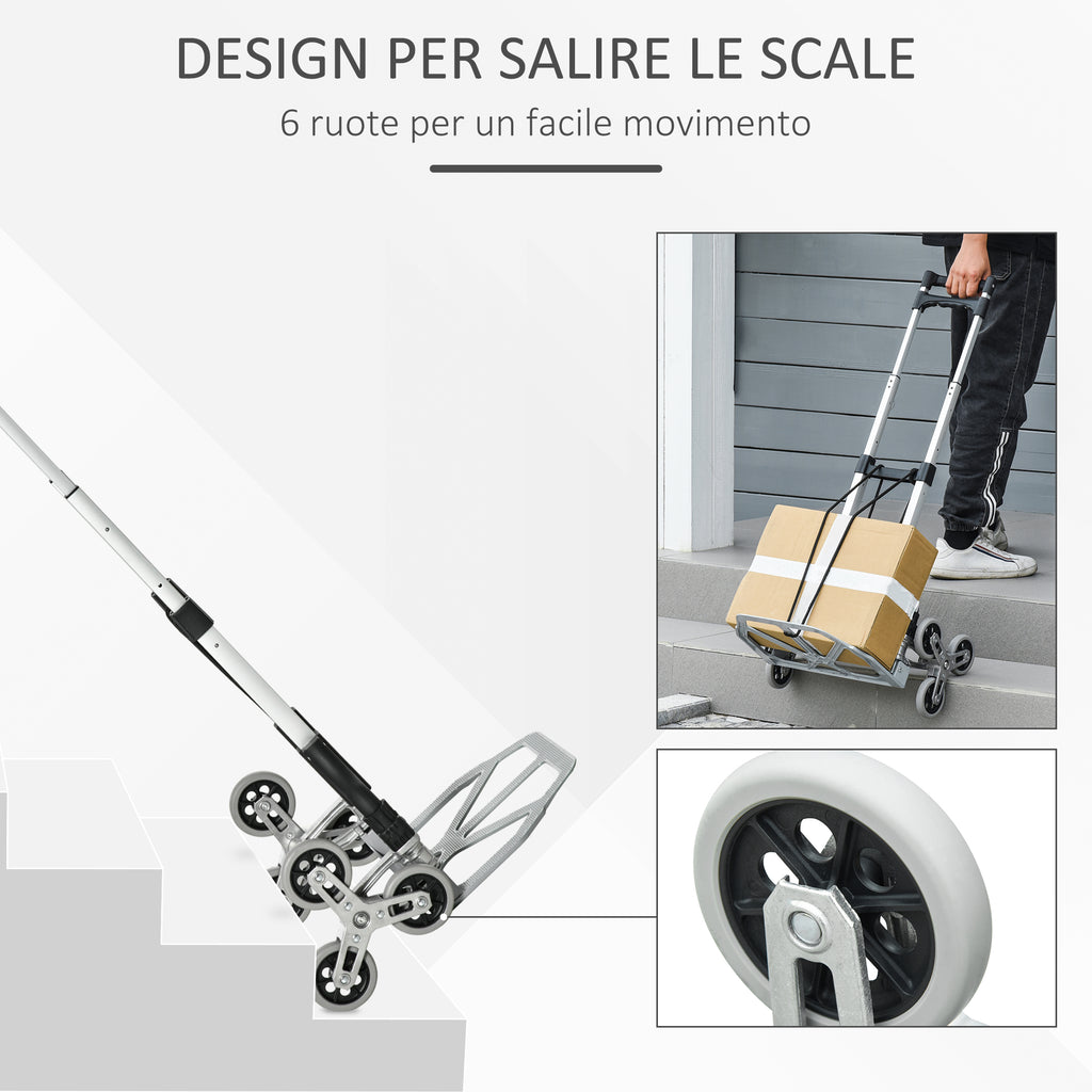 Chariot Porte-Bagages Pliant pour Escalier 70 Kg en Aluminium Noir et Gris