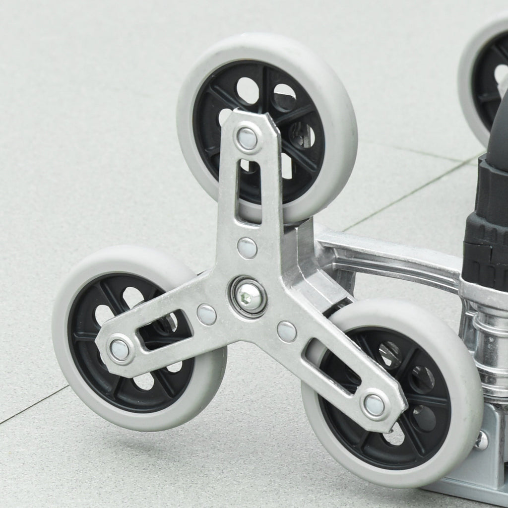 - Conception à 6 roues, conçue pour transporter des objets lourds dans des escaliers ou des surfaces inégales.