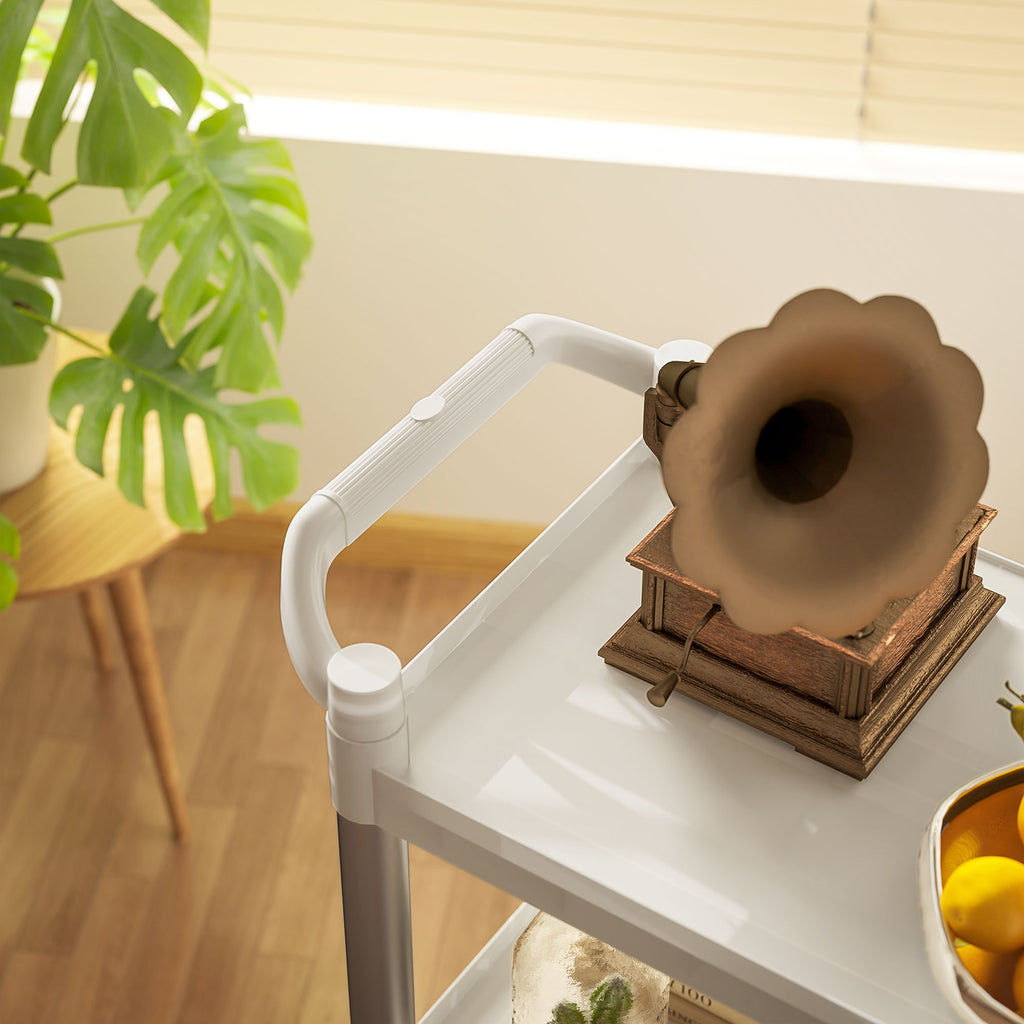 - RIPIANI A 3 LIVELLI: Questo carrello multiuso offre 3 ampi ripiani per consentire un'organizzazione semplice e versatile degli oggetti trasportati. La struttura è ideale per servire bevande, cibi o per conservare prodotti per la pulizia, adattandosi facilmente a molteplici usi