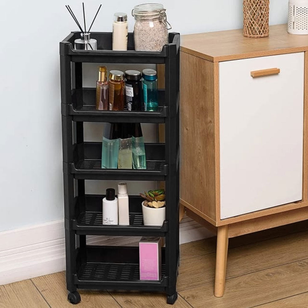 1 x Carrello Salvaspazio Cucina Bagno Scaffale Portaoggetti Multiuso Nero 5 Ripiani