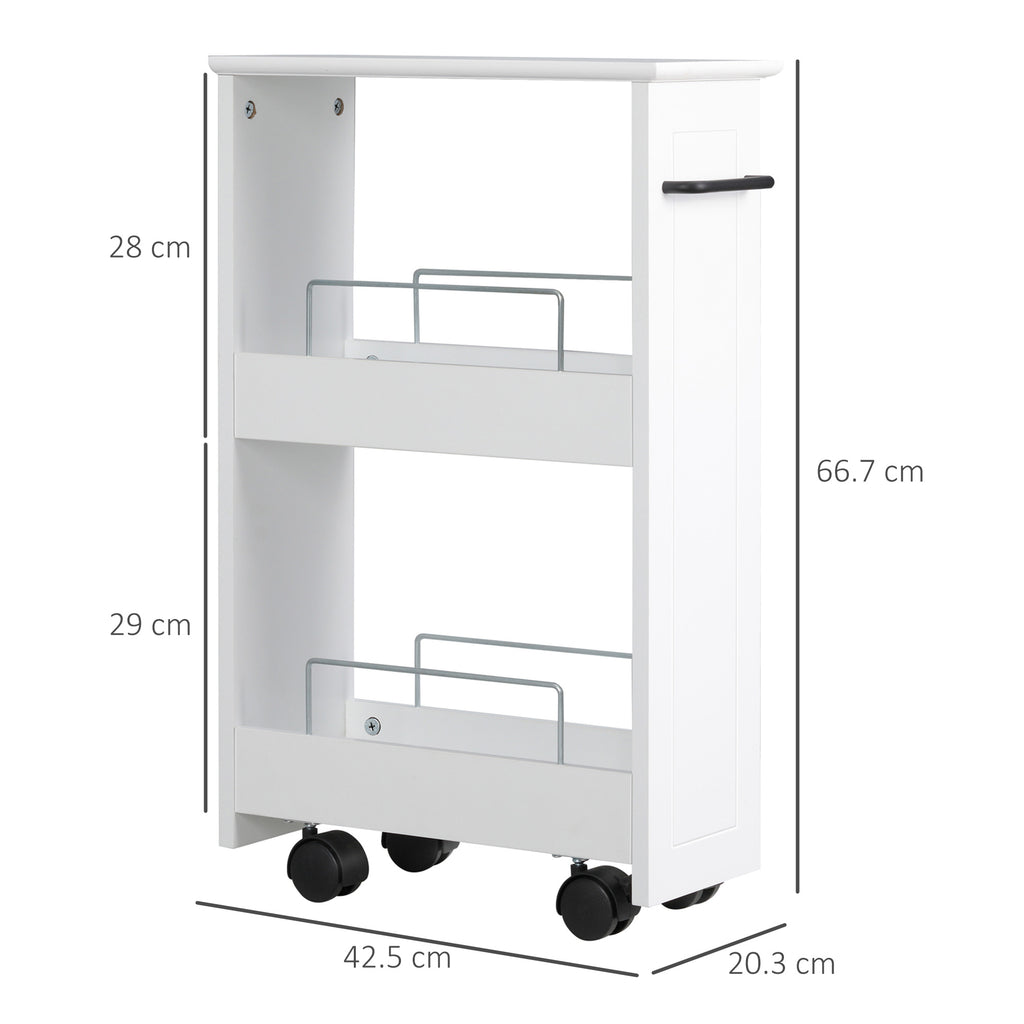 Chariot Multifonctionnel Gain de Place 42,5x20,3x66,7 cm en Bois MDF et Roues Blanches