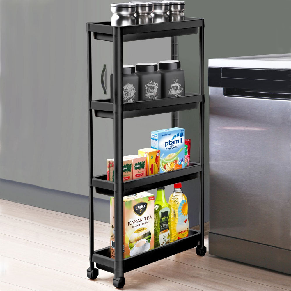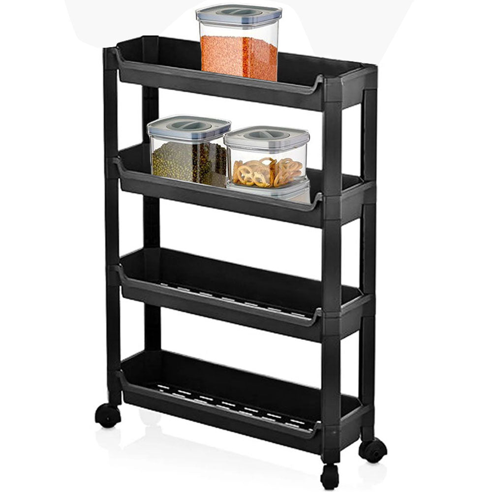 Carrello Slim Salvaspazio da Cucina Bagno Carrellino Portaoggetti 4 Ripiani Nero