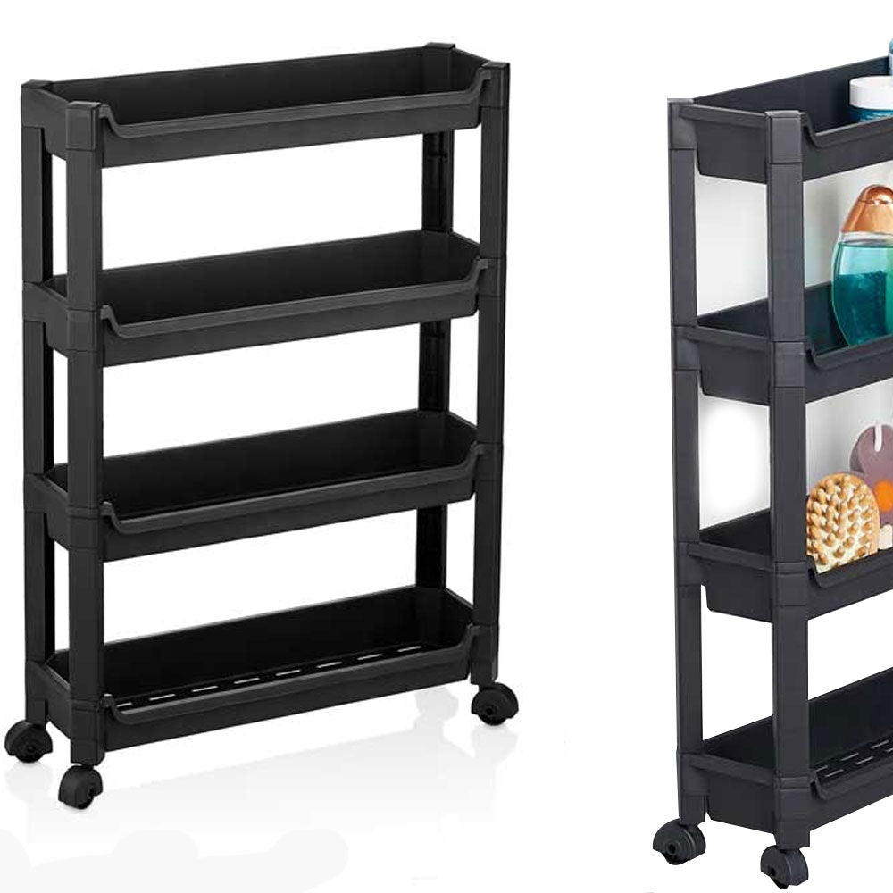 1 x Carrello Slim Salvaspazio da Cucina Bagno Carrellino Portaoggetti 4 Ripiani Nero