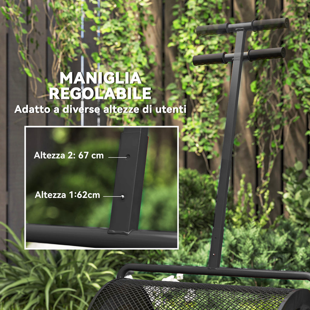 Carrello Spandiconcime da 75L 70x40x112 cm con Manico Regolabile a T in Metallo Nero