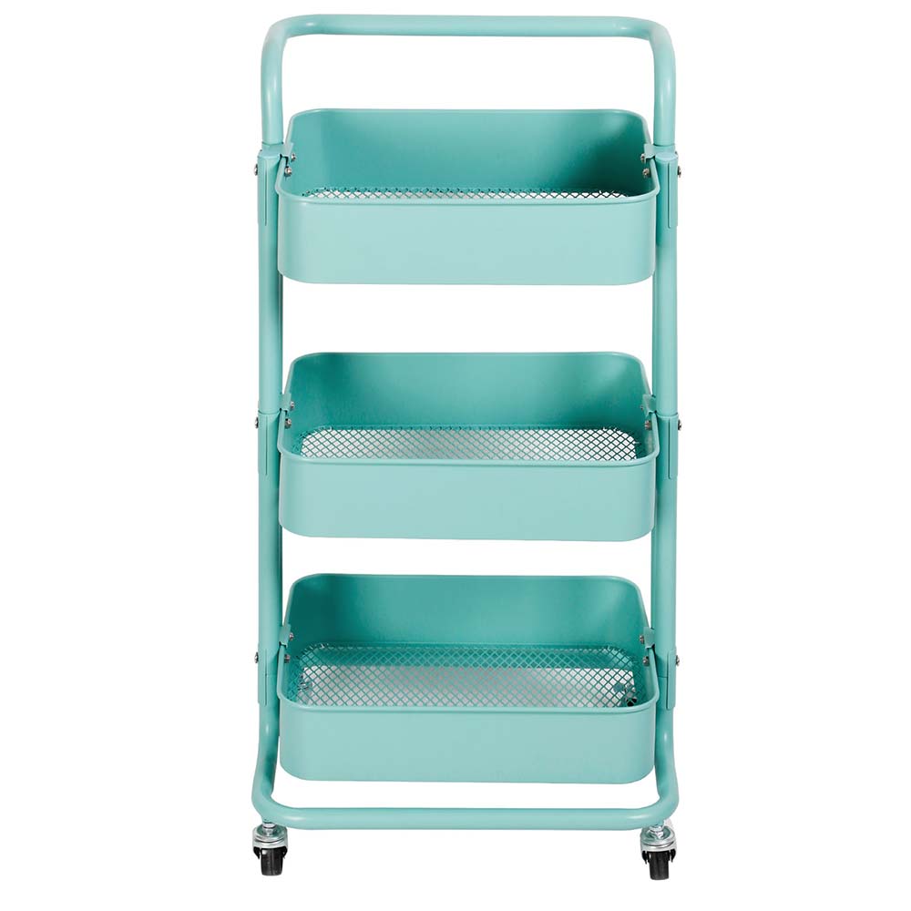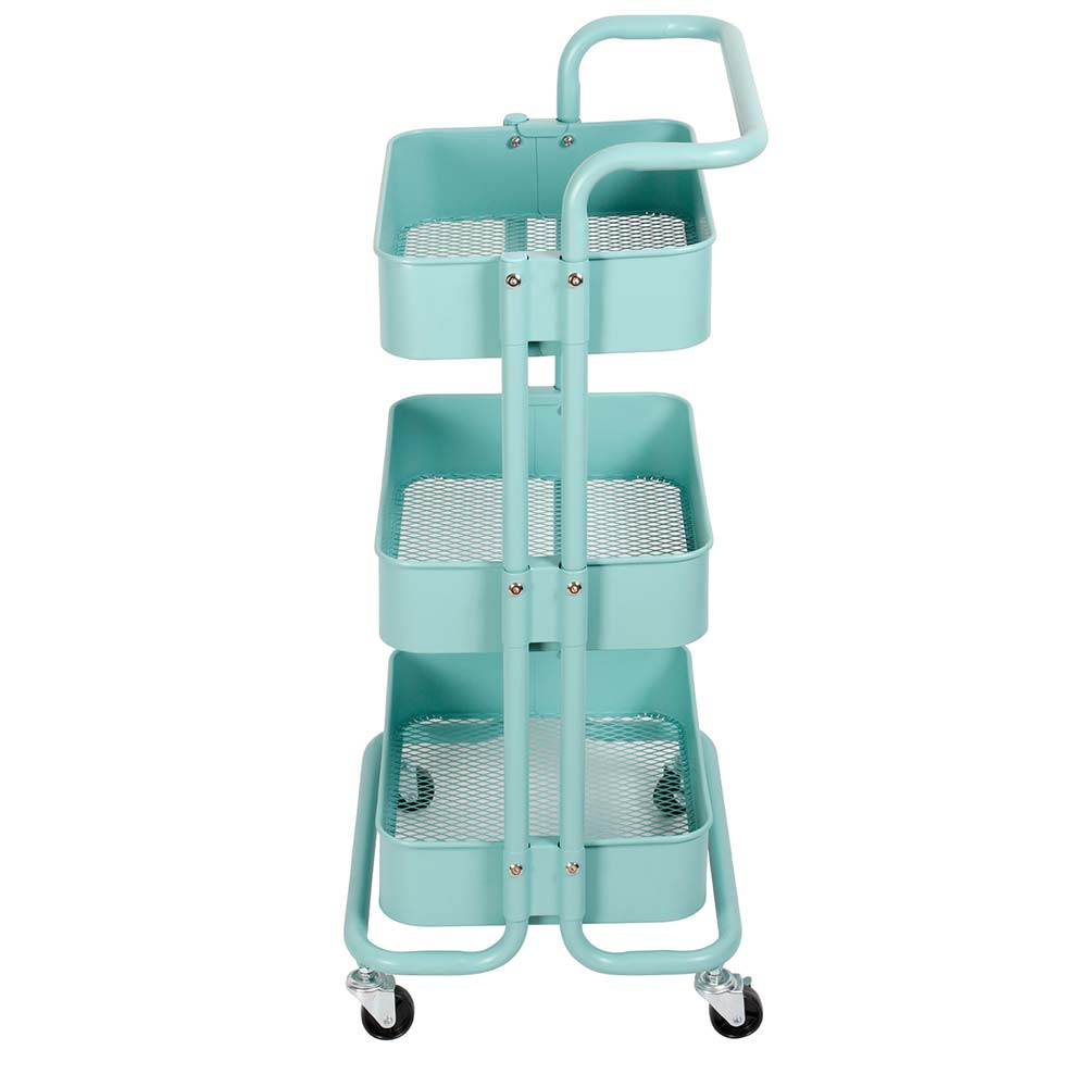 Carrello da cucina dal design moderno, comodo, affidabile e pratico realizzato interamente in metallo di altissima qualità verniciato a polvere in un bellissimo colore blu, fornito di 3 capienti ripiani a cesto utili per contenere frutta verdura, stoviglie e tutto ciಠche vorrai.