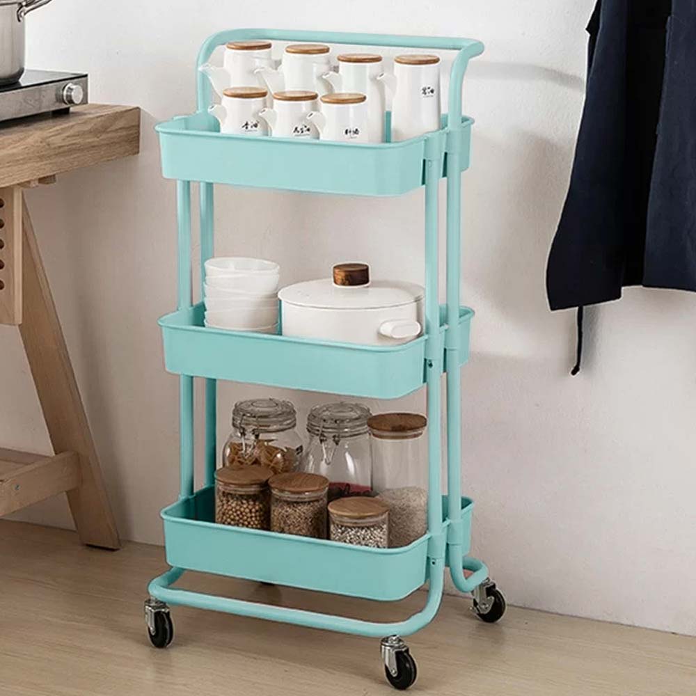 1 x Carrello Trolley Cucina in Metallo 3 Ripiani 43x36x85 4 Ruote Salvaspazio Blu