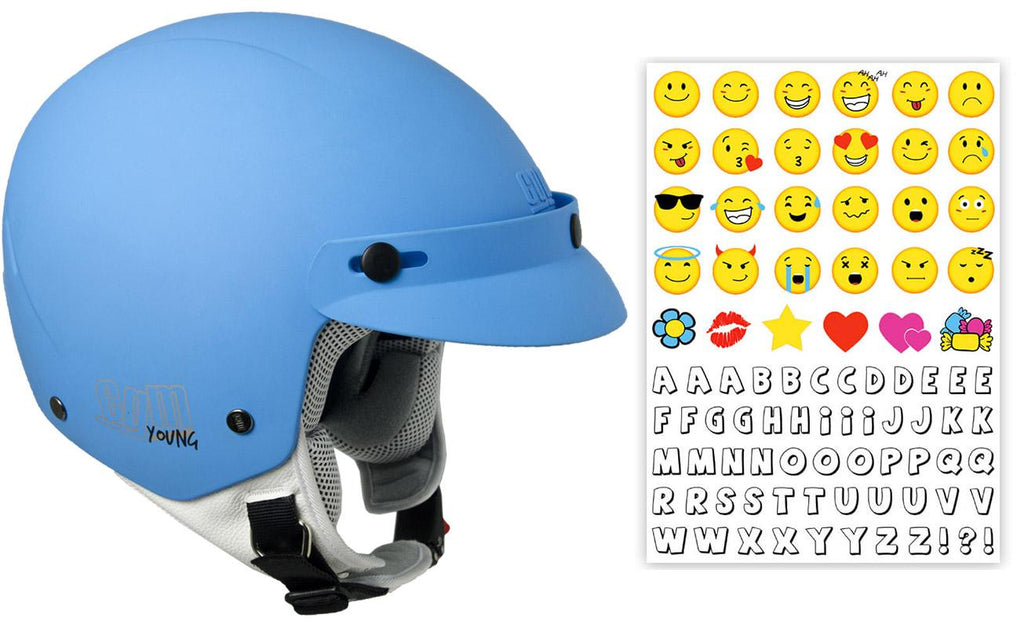Casque Demi-Jet pour Enfants Visière avec Boutons Homologué CGM Cuba Smile 204S Bleu Mat