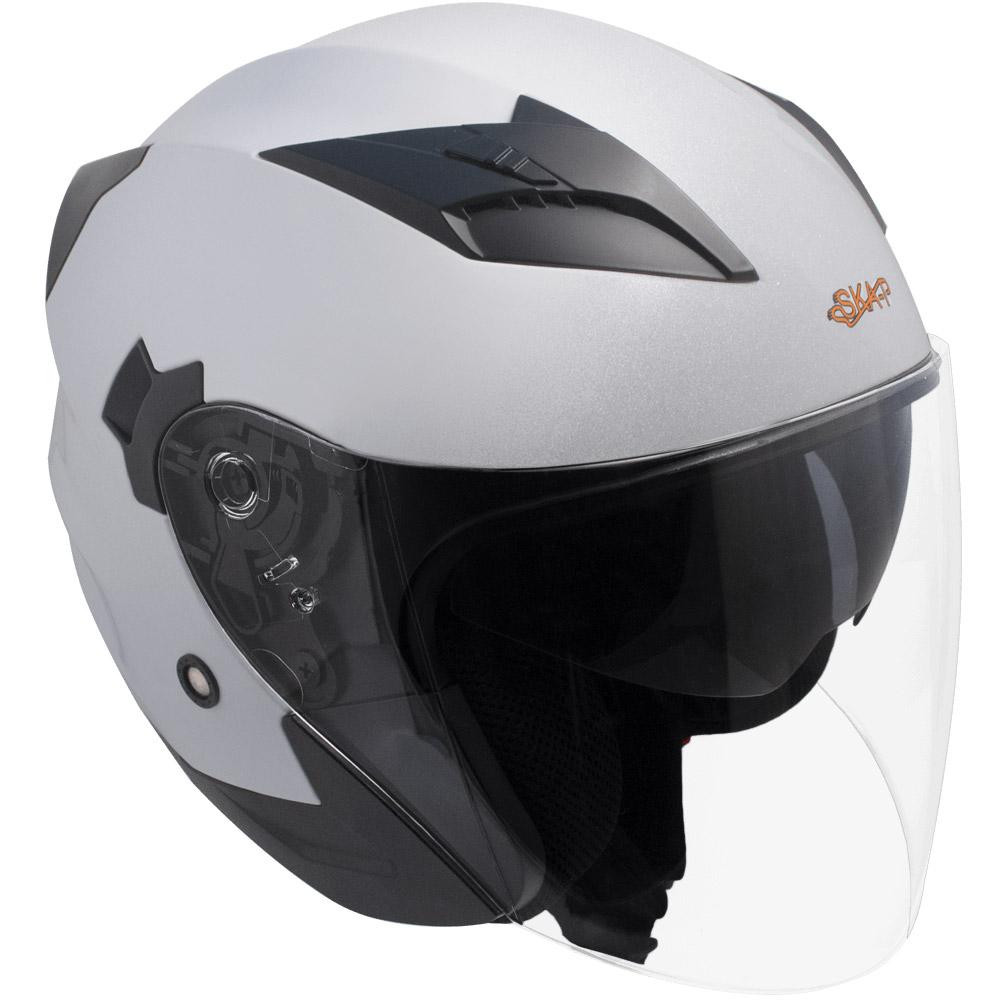 Casque Demi-Jet pour Scooter Ska-P 1 PH Bolt avec un design aérodynamique caractérisé par les verres internes extra fumés.