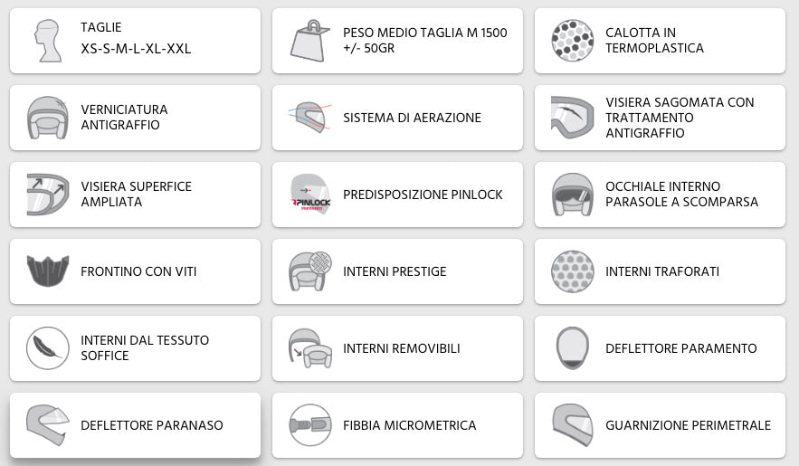 La visière a des broches spéciales pour insérer la lentille Pinlock contre la buée de la visière qui peut se produire en raison de la respiration et de la différence de température interne et externe du casque.