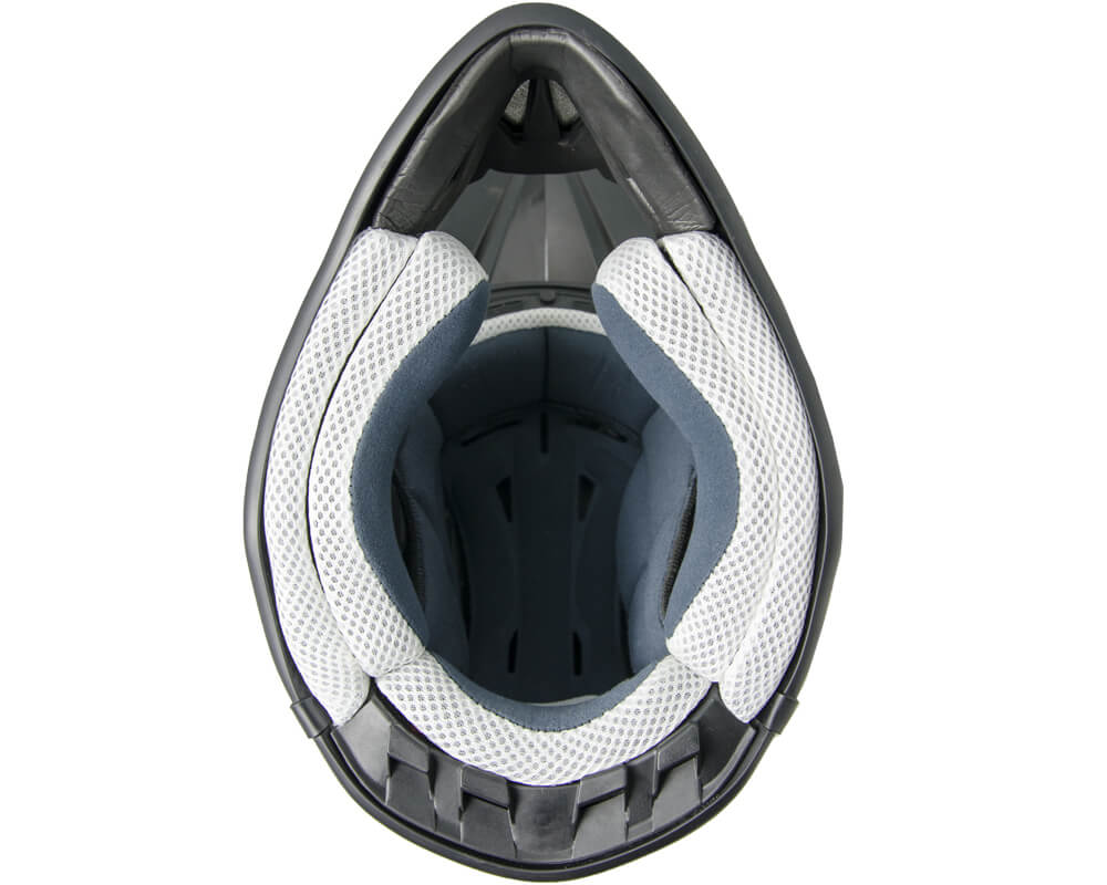 Le système de ventilation AIR STREAM SYSTEM se compose de prises d'air avant, de conduits d'air dans la coque intérieure et d'extracteurs arrière. L'air frais pénètre dans les prises d'air avant du casque et, en passant par les conduits spéciaux de la coque intérieure, atteint le pilote. La circulation de l'air est générée en exploitant le mouvement qui génère une pression négative et en poussant l'air chaud interne vers l'arrière du casque d'où il sort par les extracteurs d'air arrière. De cette façon, le pilote bénéficie d'un recyclage constant de l'air à l'intérieur du casque qui garantit toujours une température agréable.