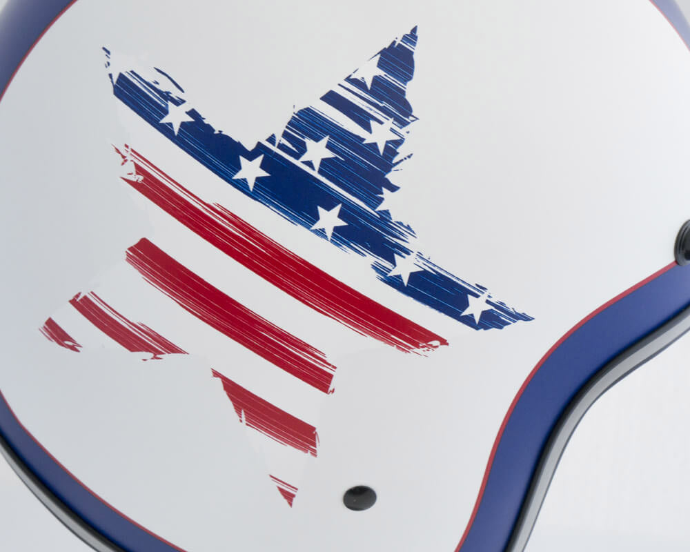 Chacun de nos casques est soigneusement traité pour obtenir la finition souhaitée. La coque, après avoir été lissée, est peinte de différentes couches de couleur, recouverte de la décalcomanie à l'eau appropriée avec le dessin souhaité, puis recouverte d'un vernis transparent résistant aux rayures.