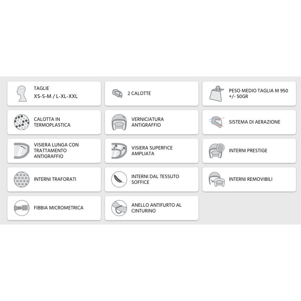 Le Casque Jet 107 pour Scooters, Motos et Quads est le modèle de référence de la marque CGM , il est plutôt opaque et enveloppant mais à la fois extrêmement compact et léger. Casque ergonomique et confortable, il est réalisé en deux tailles de coque en matière thermoplastique pour offrir un ajustement et un confort optimaux pour toutes les tailles. Le système de ventilation Air Stream System avec prise d'air centrale et extracteur arrière est complété par des intérieurs perforés enrichis de treillis métallique pour le passage de l'air. La longue visière a un bord supérieur incliné qui recouvre le joint avant et assure un meilleur ajustement.