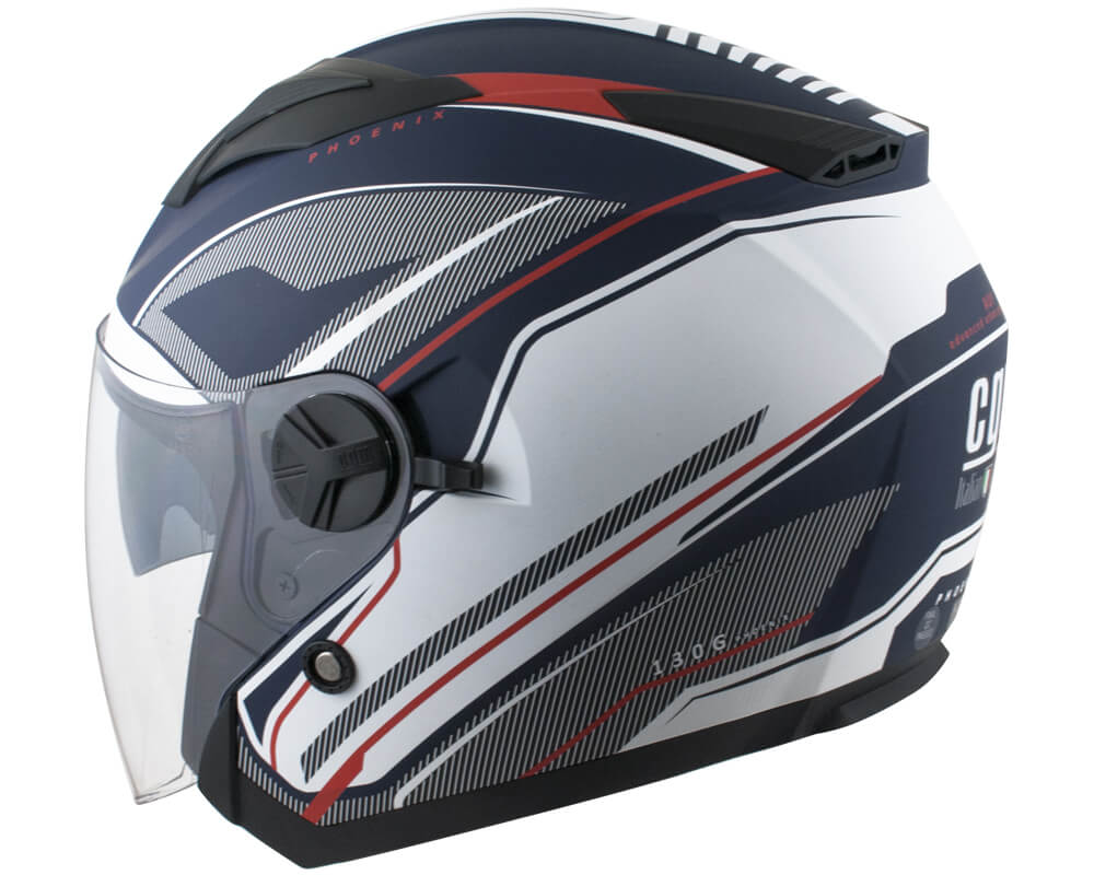 Le casque de scooter Phoenix 130G est fabriqué en deux tailles de coque extérieure pour améliorer le confort de chaque taille, il est équipé d'une longue visière externe pour une meilleure protection contre le vent et de lunettes intérieures rétractables extra-fumées. également équipé d'un système de ventilation qui utilise les entrées d'air avant pour canaliser l'air à l'intérieur du casque et expulser l'air chaud des extracteurs arrière. L'intérieur perforé, amovible et lavable est enrichi de bandes rétroréfléchissantes pour améliorer la sécurité passive.