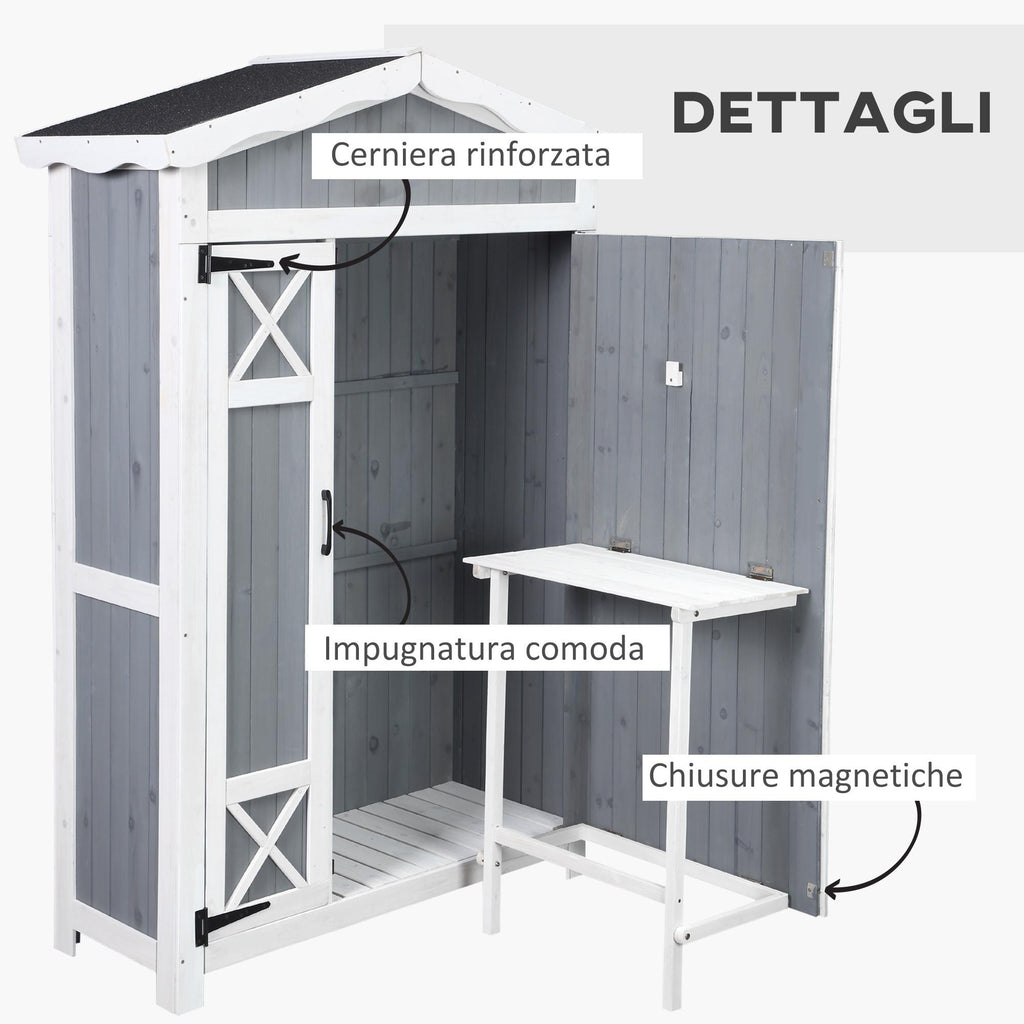 Gagnez de la place avec l'abri de jardin. Cet abri de jardin est fini avec un vernis protecteur pour protéger la structure des intempéries. Une toiture bitumée en pente évite l'accumulation d'eau et limite sa pénétration à l'intérieur. Il est fini avec des fermetures magnétiques pour le garder en sécurité et dispose d'un poste de travail rabattable pour un jardinage pratique.