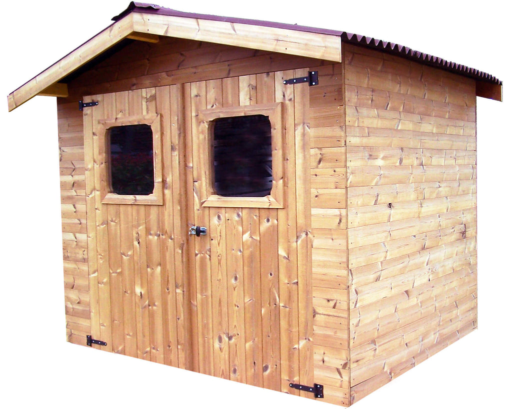 • Pareti: tavole piallate con scanalature e linguette spessore 28 mm fissati su ossatura sezione 45x95 mm. Da assemblare con viti da legno, fornite nella busta della ferramenta, in dotazione.