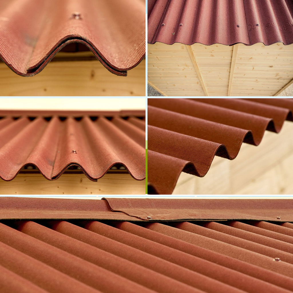 • Copertura: lastre ondulate bitumate colorate, larghezza 1m.