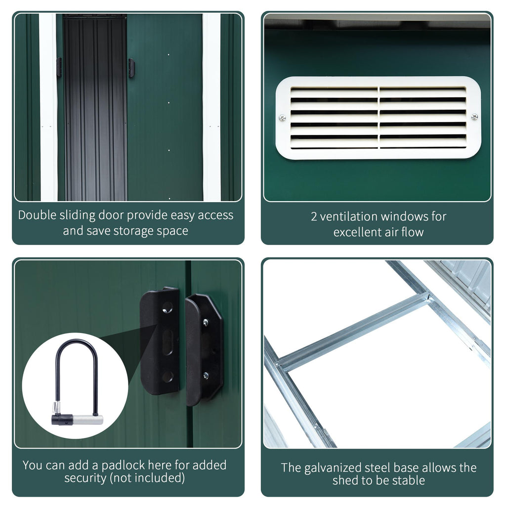 - Construction robuste : l'abri de jardin est fabriqué en acier galvanisé étanche et antirouille pour résister aux intempéries et aux rayons UV. Les doubles portes coulissantes permettent un accès facile