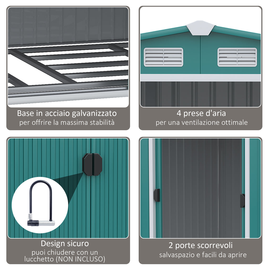 Casetta Box da Giardino 260x206x179 cm in Acciaio Verde