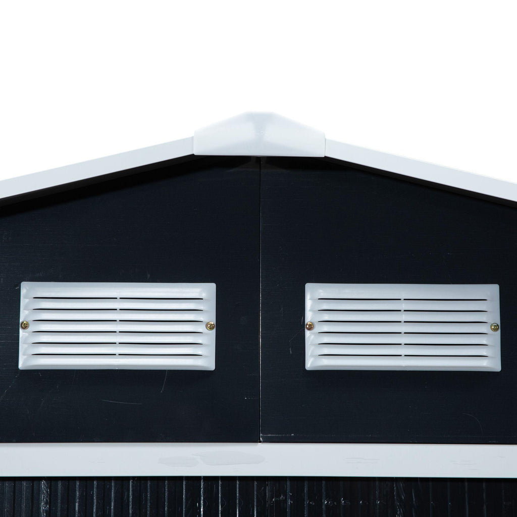 - BONNE VENTILATION : Les quatre évents et les doubles portes coulissantes de cet abri de jardin augmentent la lumière et le flux d'air, empêchant les odeurs désagréables et aidant à réduire l'humidité dans l'abri. En outre, vous pouvez protéger vos articles des intempéries et du vent fort en toute sécurité.
