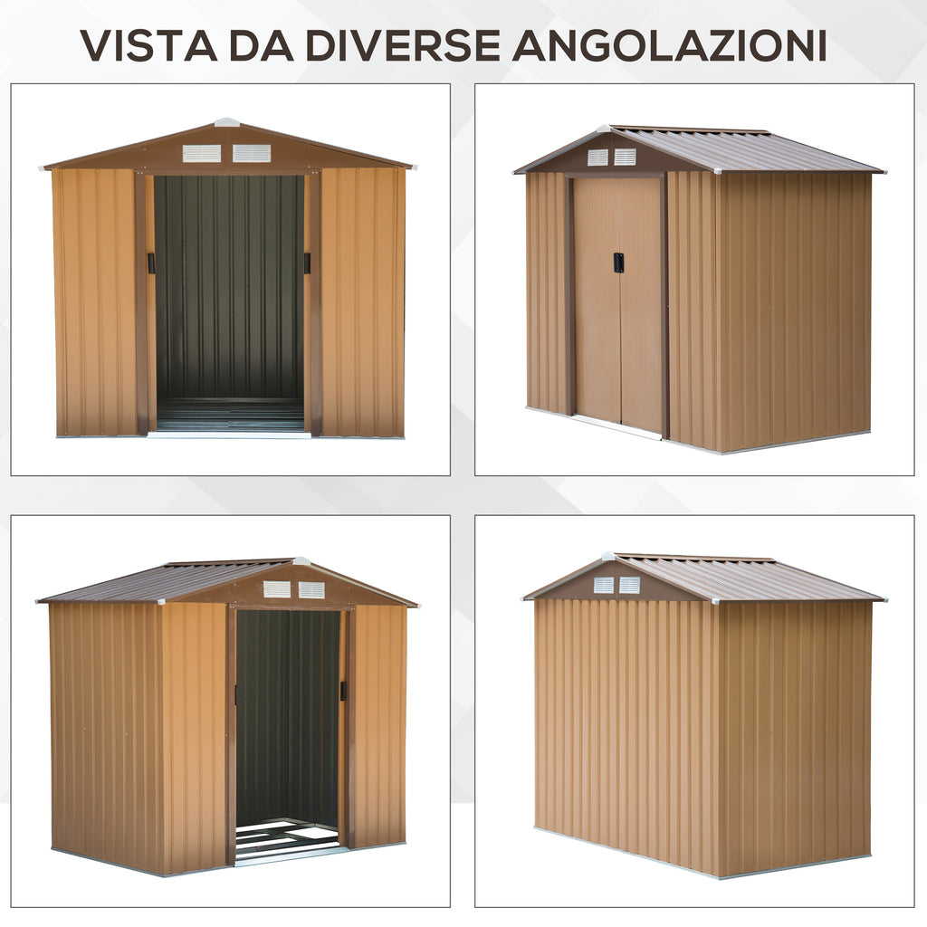 Coffre de jardin en tôle d'acier porte-outils 213x127x185 cm