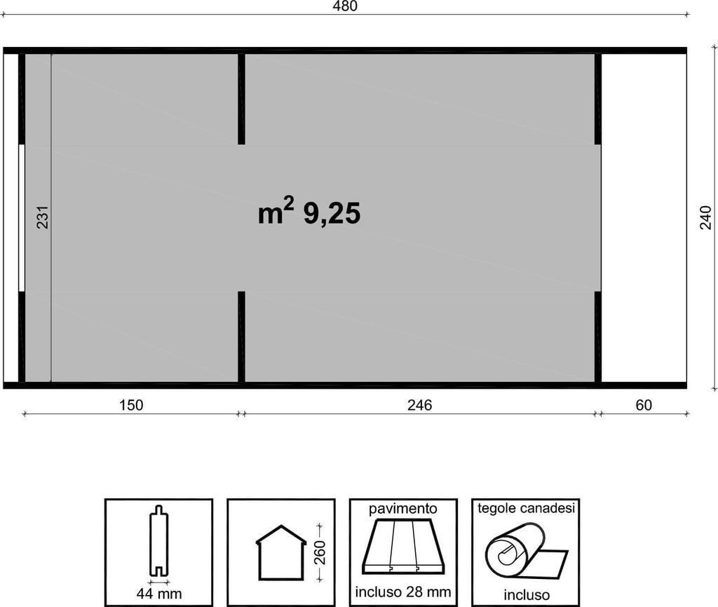 - Surface au sol intérieure 9,25 m2