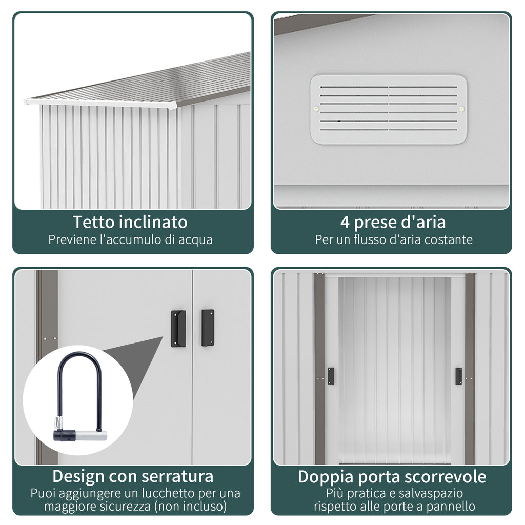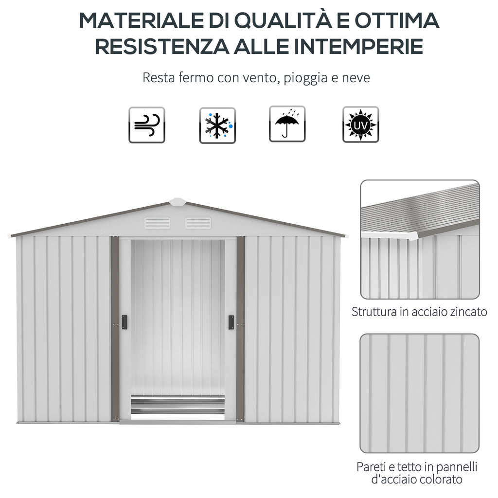 Abri de Jardin avec Doubles Portes Coulissantes 277x195x192 cm en Acier et Polypropylène Argent