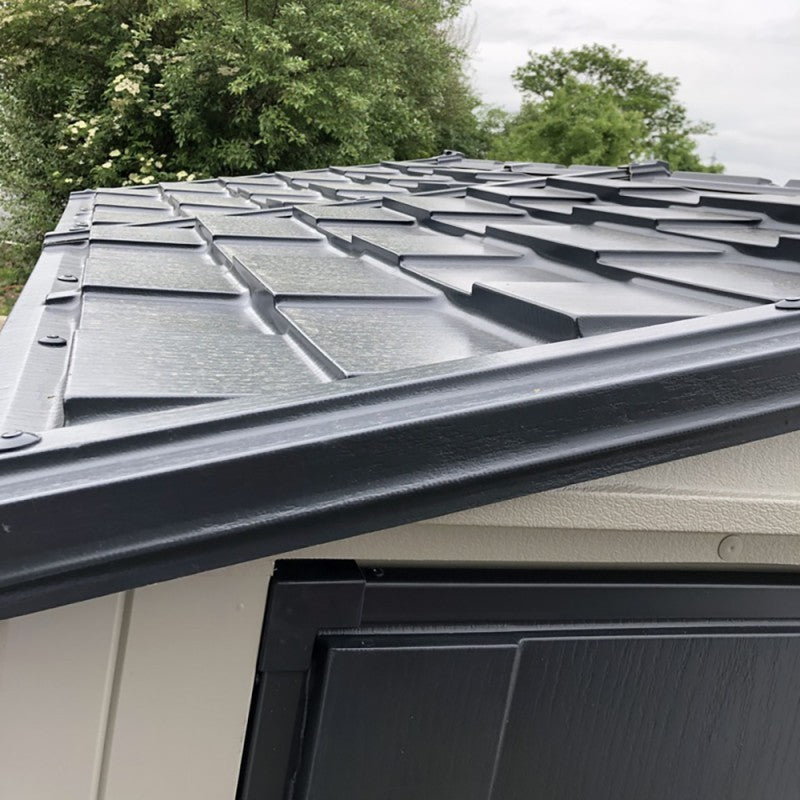 Grâce à la résine vinylique insensible aux diverses conditions climatiques, ils n'ont pas besoin d'être traités, ils ne rouillent pas et ne pourrissent pas. Ils sont soutenus par des poutres internes en acier galvanisé durable. Les piliers latéraux sont renforcés par une solide structure métallique qui donne de la solidité aux cabanons et permet le montage d'étagères ou la fixation d'outils de jardin. Des poignées verrouillables (cadenas non inclus) protègent le contenu, et le système de ventilation double avec grille rainurée sur le pignon augmente le flux d'air à l'intérieur. Tous les murs sont soigneusement emballés dans la boîte en carton et la maison est facilement assemblée grâce aux instructions de montage détaillées.