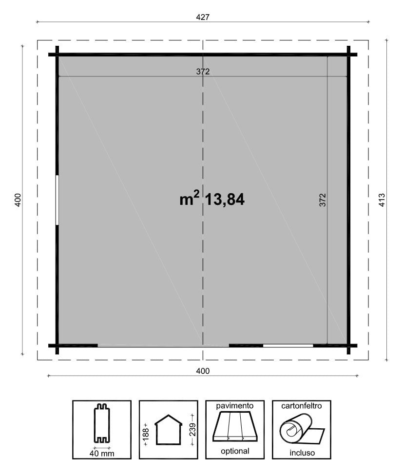 Abri de Jardin Double Porte 2 Fenêtres 400x400 cm en Bois Valencia