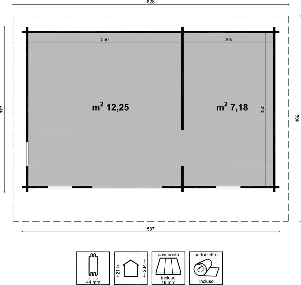 - Dimensions au sol 587x377 cm