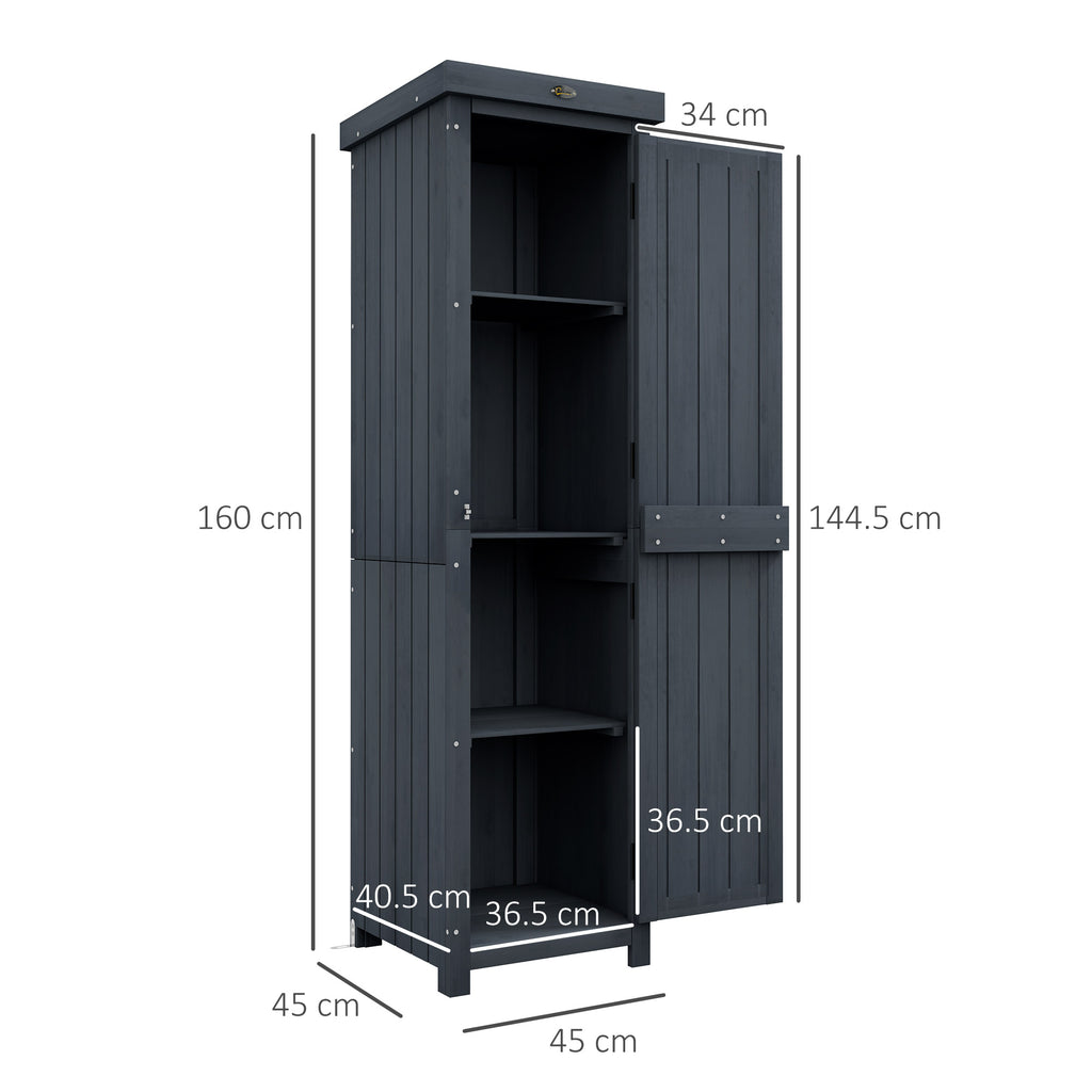 Casetta Porta Attrezzi a 3 Ripiani con Tetto in Metallo 45x45x160 cm in Legno da Abete Grigio