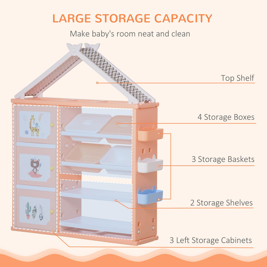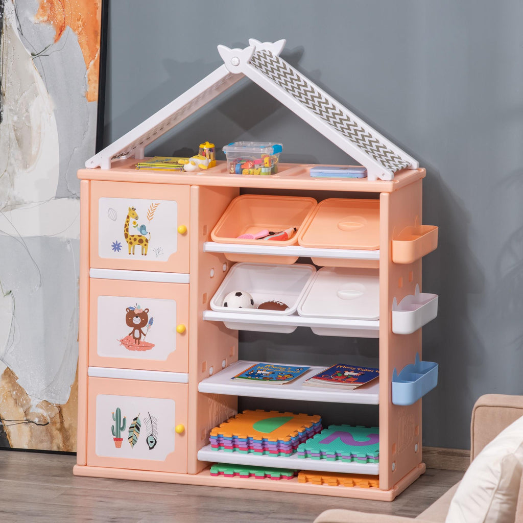 - Certifications : EN71-1-2-3 SPACIEUX : L'armoire à jouets comprend 3 armoires, 4 boîtes fermées, 3 paniers latéraux, 1 étagère supérieure et 2 étagères inférieures que vous pouvez utiliser pour ranger des vêtements, des jouets ou des livres.