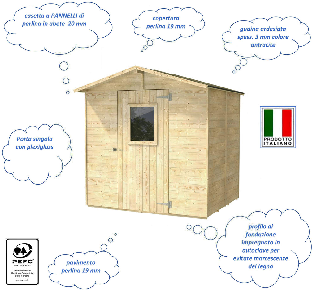 - murs pré-assemblés en lambris de sapin naturel, épaisseur 19 mm